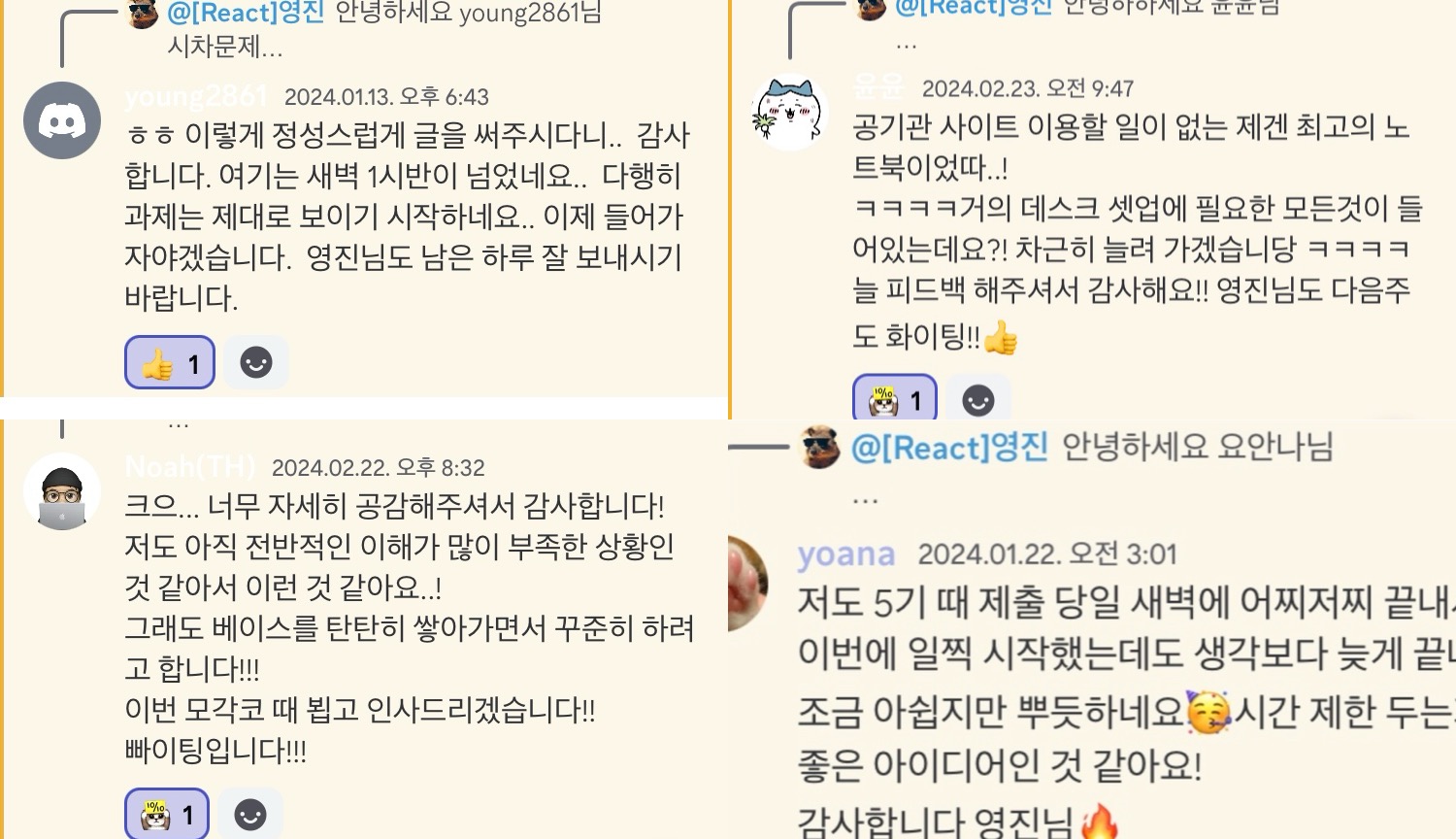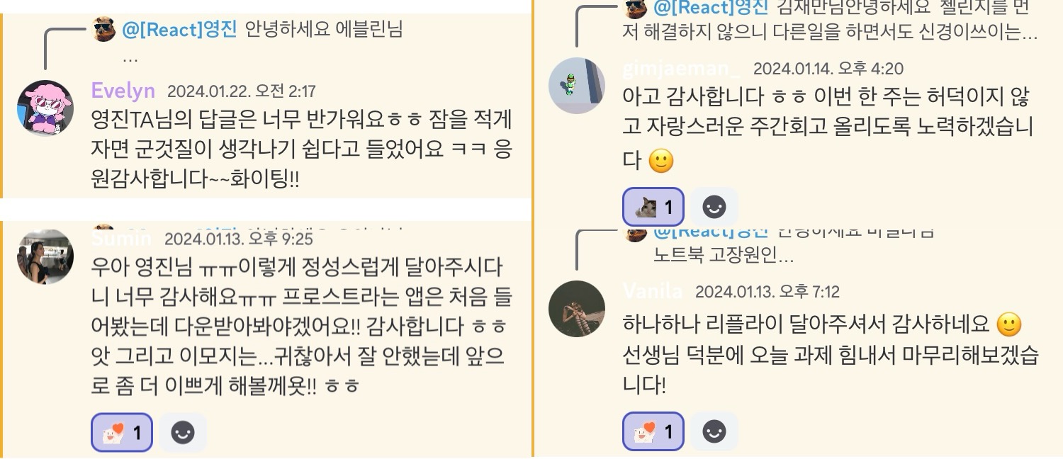 그래서 수강생 한분 한분의 회고마다, 최대한 성심 성의껏 코멘트를 작성하려고 노력했다.