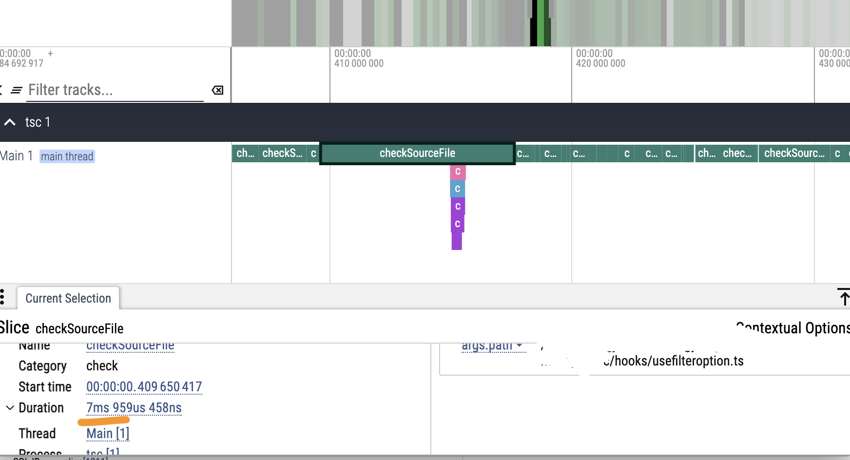 이게 바로 제가 필요로 한 부분이에요. 타입스크립트의 타입 검사의 성능을 표시하는 구간이지요.