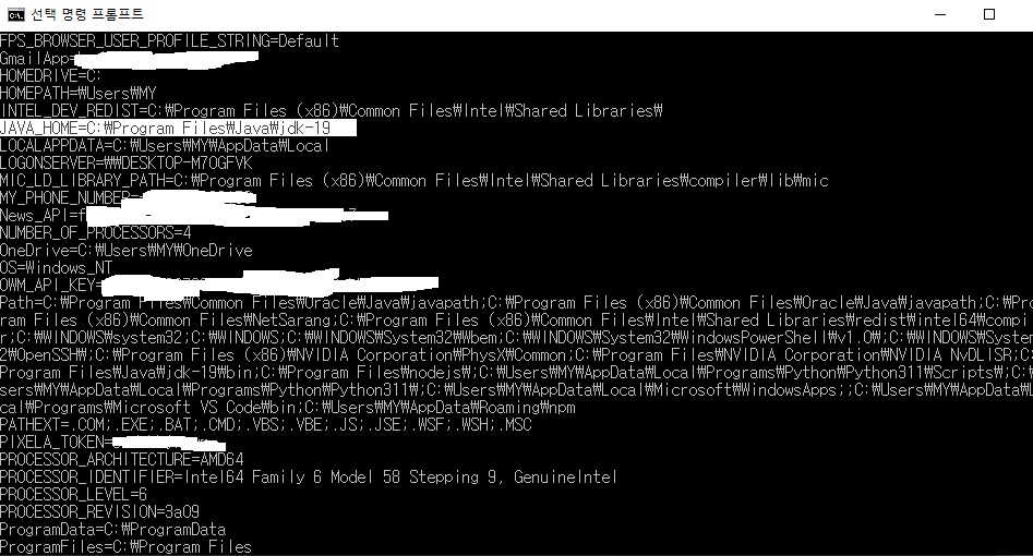 + cmd 명령 프롬포트에서 set을 입력시 현재 저장되어있는 환경변수를 전부 볼 수 있다.