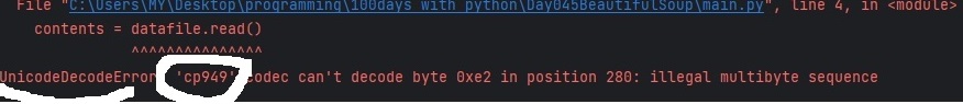 UnicodeDecodeError는 코드해석중에 유니코드와 관련하여 일어나는오류이며, UnicodeError의 일종이라고한다.