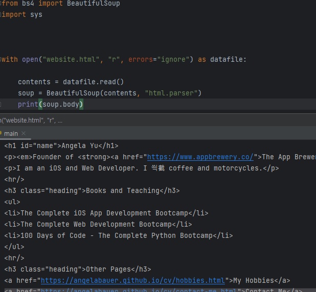 read에 datafile이 잘못주어진것인지, open에 "website.html"이 잘못주어진것인지 체크해보았다.