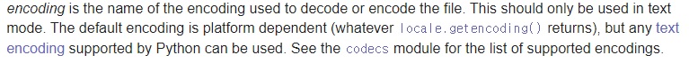 그러고보면 open 함수의 항목중에는 encoding 도 있었다.