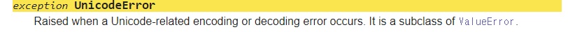 그리고 UnicodeError는 ValueError(값에러) 의 일종이다.
