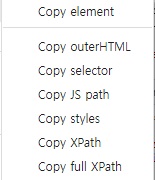 선택 대상의 CSS selector 경로를 복사한다.