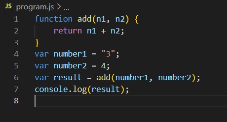 이 코드에선 number1을 string으로 선언했으나, 아무런 경고메시지가 나오지 않는다.
