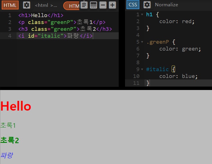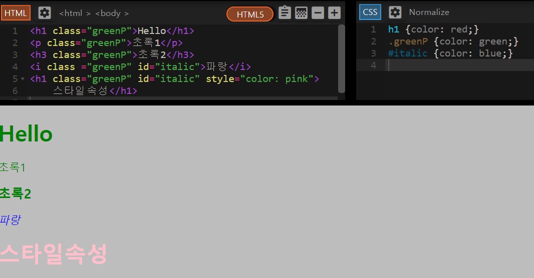 위의 HTML은 초록색으로 스타일링 된다.
