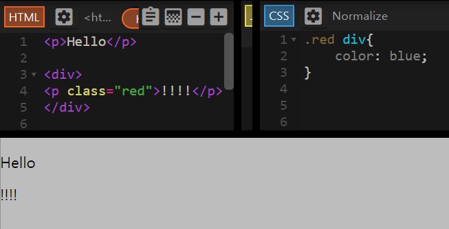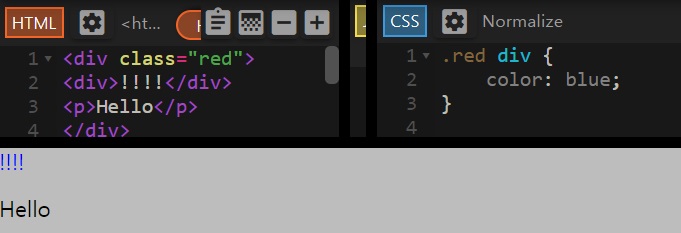 이때, 앞에 오는 선택자가 뒤에 오는 선택자의 부모(상위) HTML요소이어야 한다.