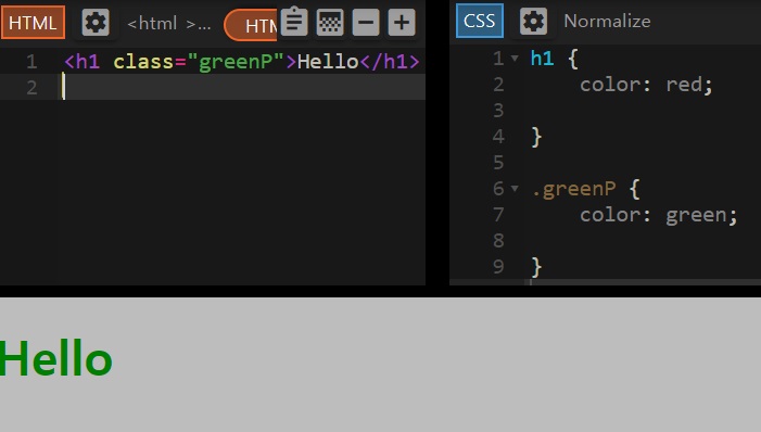 <h1 class="greenP">Hello</h1>