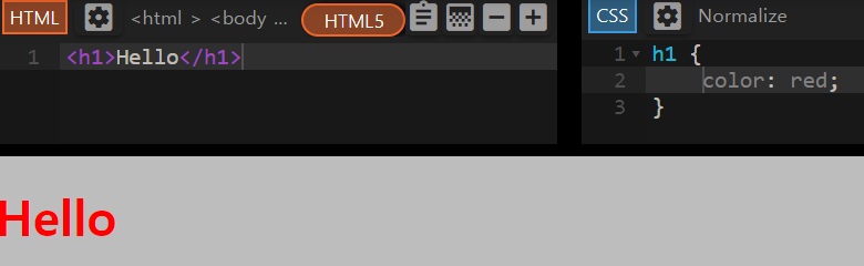 <h1 style="color: red">Hello</h1>
