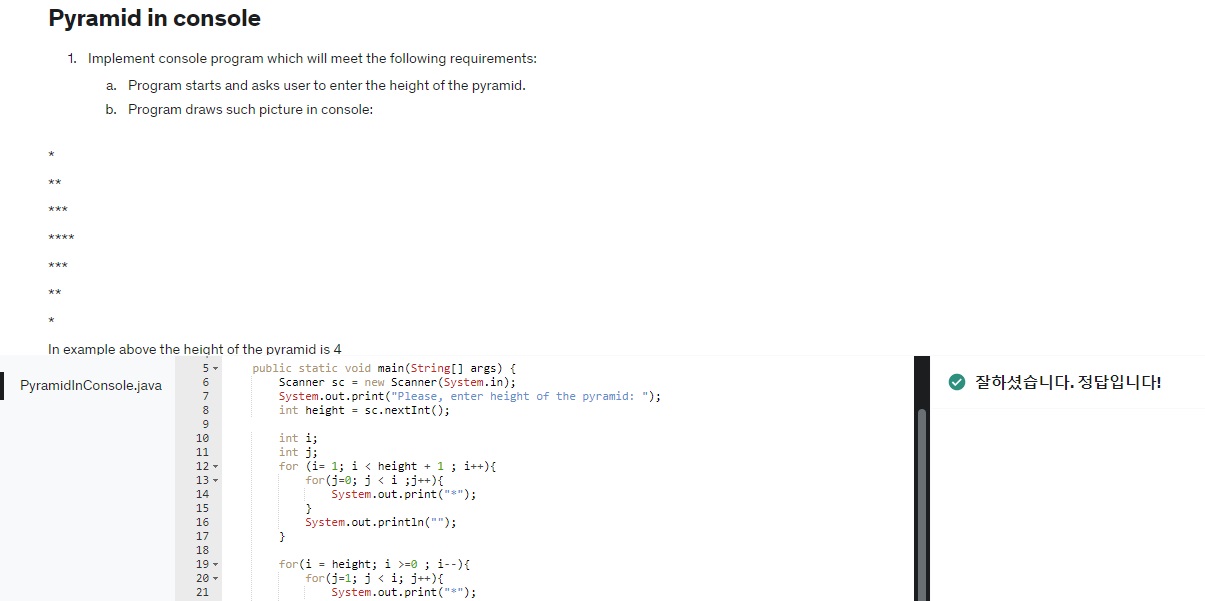 "입력받은 높이의 피라미드 출력" 과제가 저를 막아섰습니다.