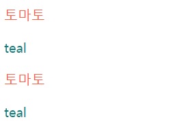 <p style="color: tomato"> 토마토 </class>