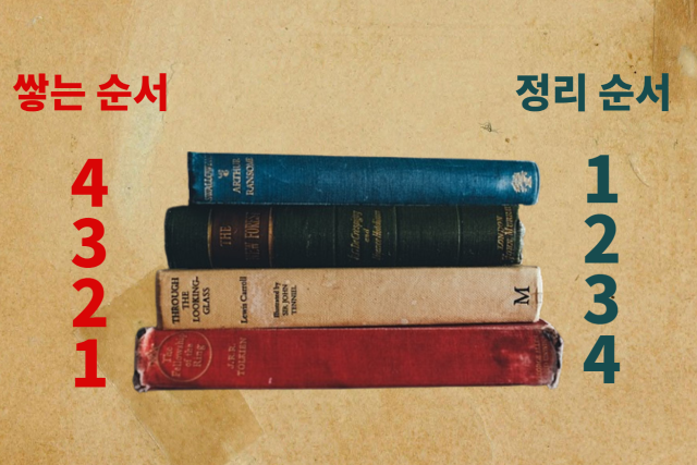 Q. 책더미를 쌓아야겠어요. 위의 사진을 찍은 사람은 저 스택을 어떻게 만들었을까요?