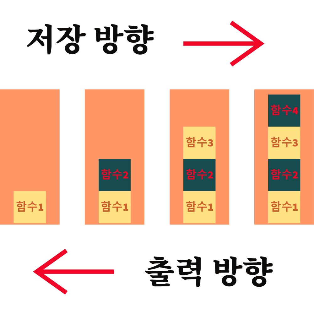 함수가 호출되면 콜 스택에 저장하고, 실행이 완료되면 다시 제거하는 방식입니다..