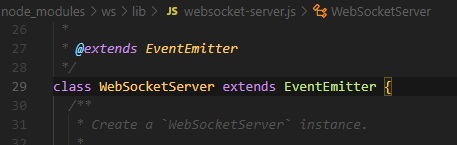 웹소켓 서버는 EventEmitter라는 클래스를 상속받고 있었다.
