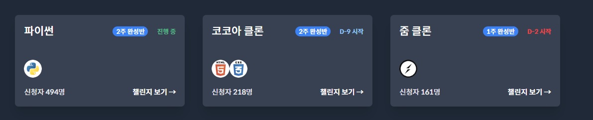 노마드코더에선 무료로 챌린지라는 단기간 부트캠프를 운영하고 있습니다.