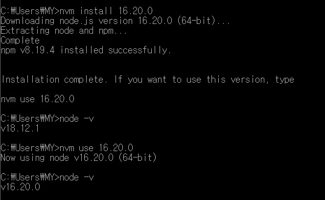 nvm install 16.20.0 // 16.20.0 버전의 노드설치